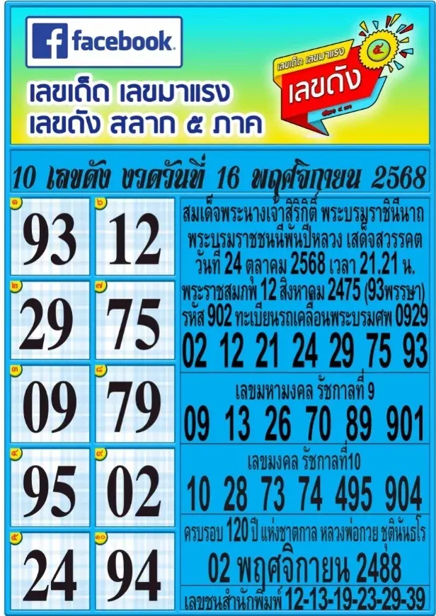 10 เลขเด็ดเลขดัง "สลาก 5 ภาค" งวดวันที่ 16 พฤศจิกายน 68..รีบส่องเลย ก่อนหวยหมดแผง!!