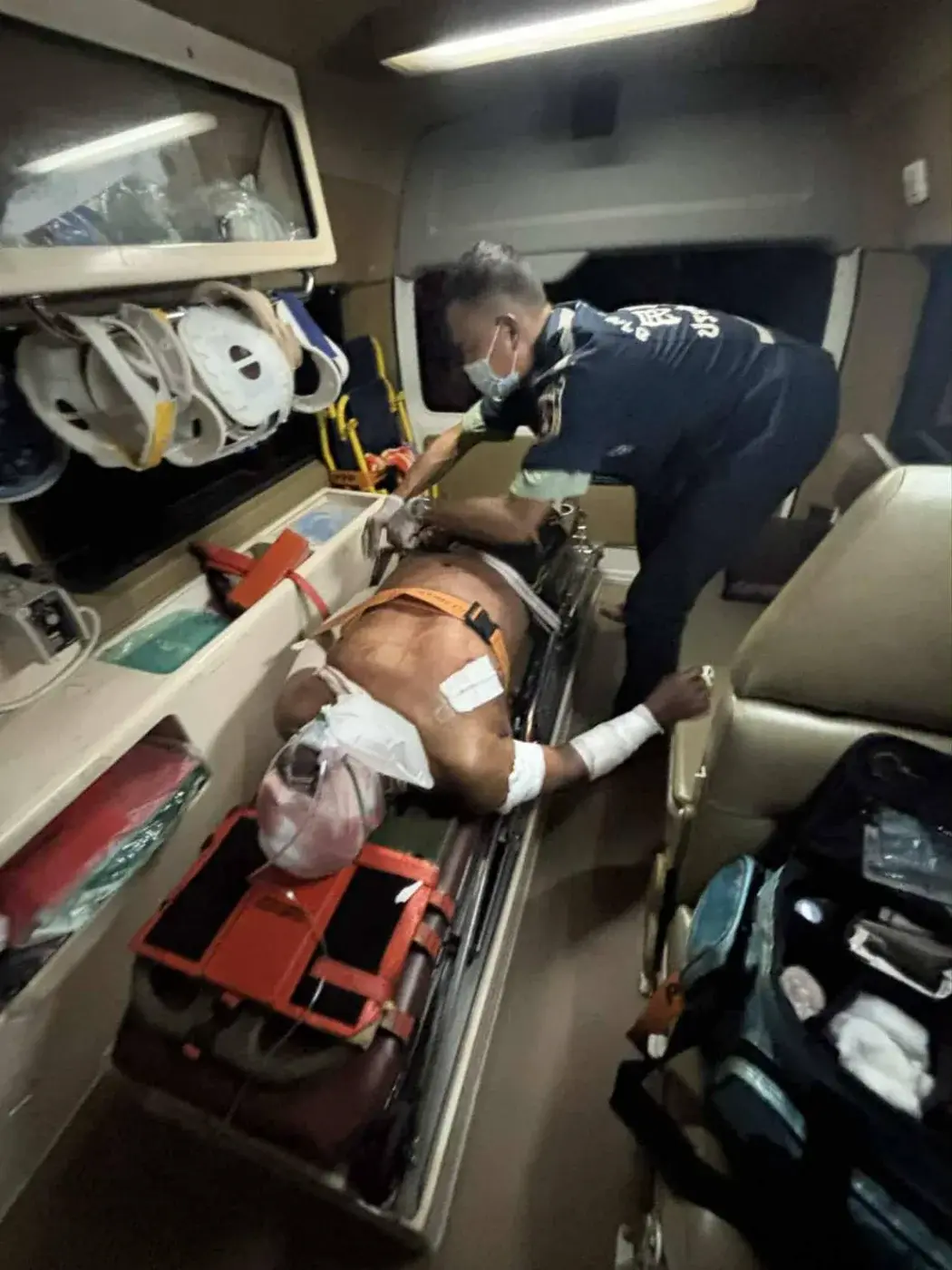 เมื่อถึงที่เกิดเหตุคนเจ็บ ถูกเจ้าหน้าที่กู้ชีพ อบต.กลาย นำส่งโรงพยาบาลท่าศาลา ก่อนหน้านี้แล้ว พร้อมข้อมือข้างซ้ายที่ขาดเป็นท่อน แต่คนเจ็บอาการสาหัส จึงถูกส่งต่อโรงพยาบาลมหาราชนครศรีธรรมราช แพทย์อยู่ระหว่างช่วยเหลือต่อข้อมือที่ขาดท่อน จากการสอบสวนคนเจ็บทราบชื่อนายสามารถ อายุ 44 ปี อยู่บ้านหมู่ 6 ต.กลาย อ.ท่าศาลา จ.นครศรีธรรมราช