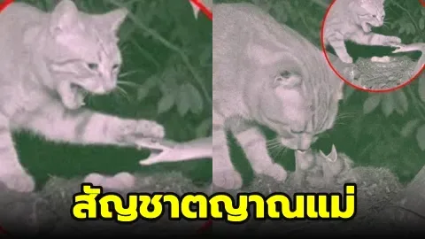 สัญชาตญานแม่..แมวป้อนอาหารให้ลูกนกกิน