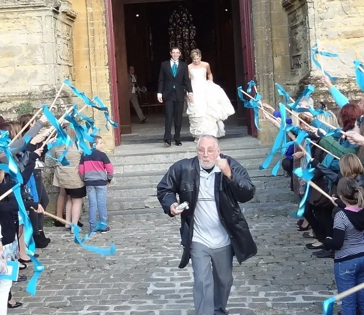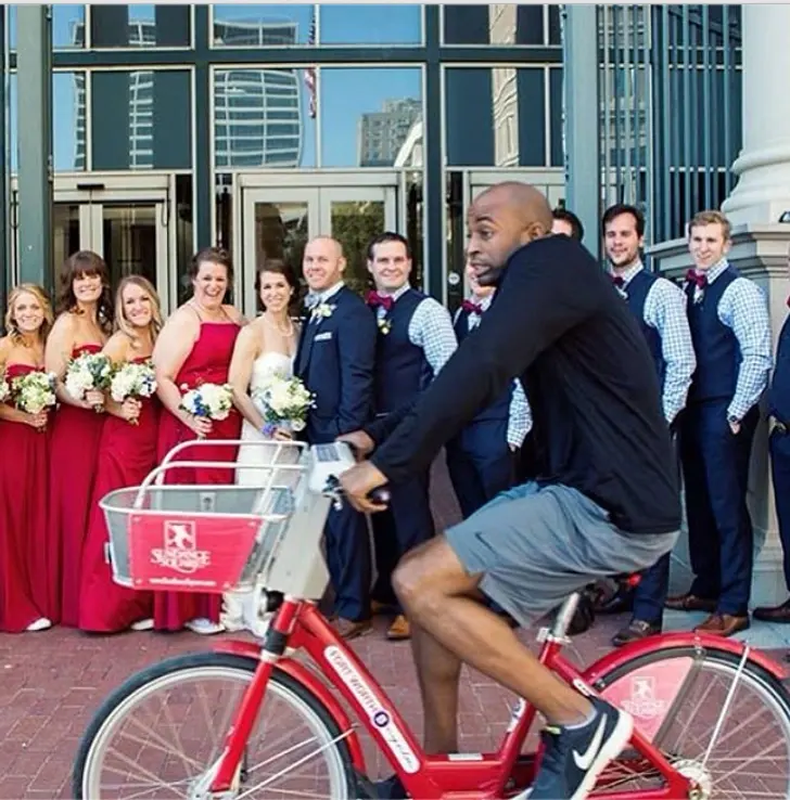 6. นี่คือสีหน้าของชายคนนี้ที่ขี่รถจักรยานมาในขณะที่กำลังถ่ายรูปหมู่ของคู่บ่าวสาว แบบที่สามารถอ่านจากสีหน้าได้ว่า “โอ๊ย แย่แล้วฉัน”