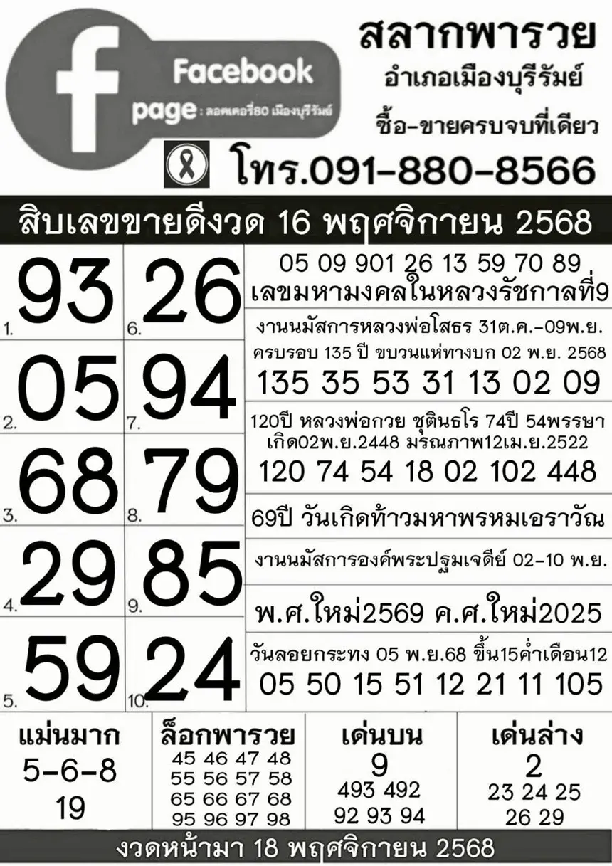 เลขเด็ด เลขมาเเรง เลขดัง "รวมหวยเด็ดสำนักดัง vol.16" งวดวันที่ 16 พฤศจิกายน 2568
