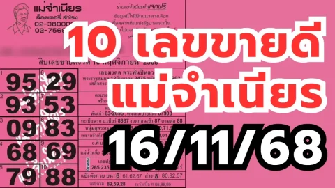 สิบเลขขายดีแม่จำเนียร งวด 16/11/68
