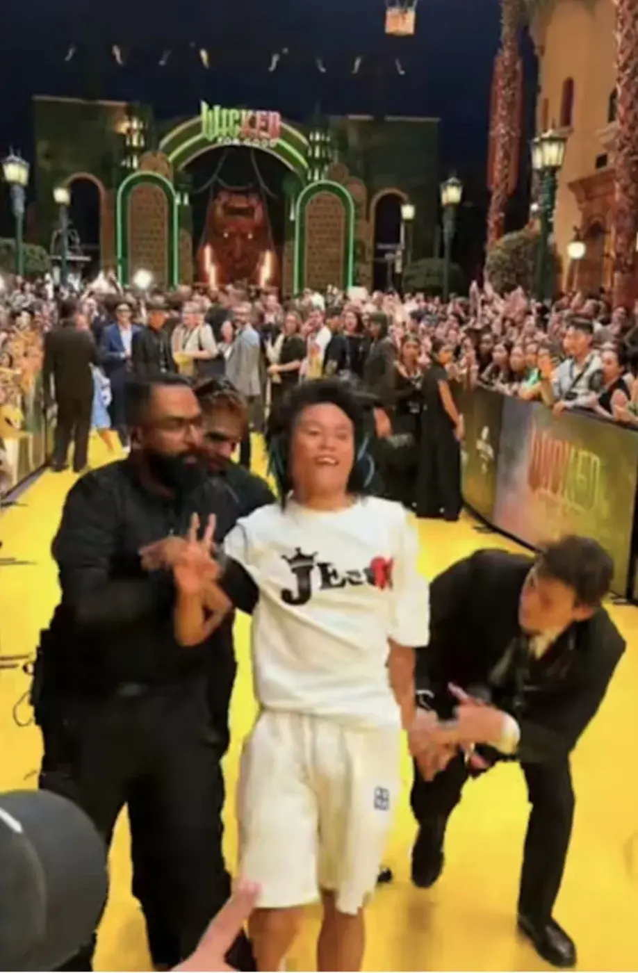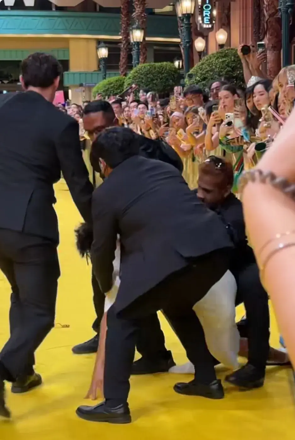 อย่างไรก็ตาม ฉากดราม่าได้เกิดขึ้นบนพรมเหลือง เมื่อชายคนหนึ่งกระโดดข้ามราวบันได และ รีบวิ่งเข้าไปโอบไหล่และกอด "อารีอานา กรานเด" โชคดีที่ ซินเธีย เอริโว ตอบโต้ได้อย่างรวดเร็ว เธอได้ผลักชายคนนั้นออกไป แล้วหลังจากนั้นบอดี้การ์ดหลายคน ได้เข้ามารีบดึงชายคนดังกล่าว ก่อนจับกดลงกับพื้น แล้วพาตัวออกจากงานไป