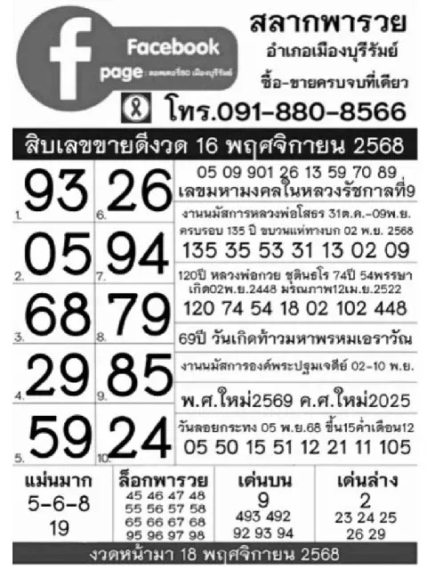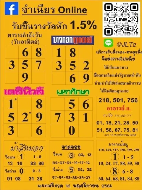 หวยเด็ดงวด 16 พฤศจิกายน 2568 รวมเลขดังจากหลายสำนัก พร้อมเลขที่ “ชนกัน” มาแรง!
