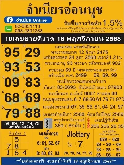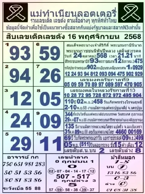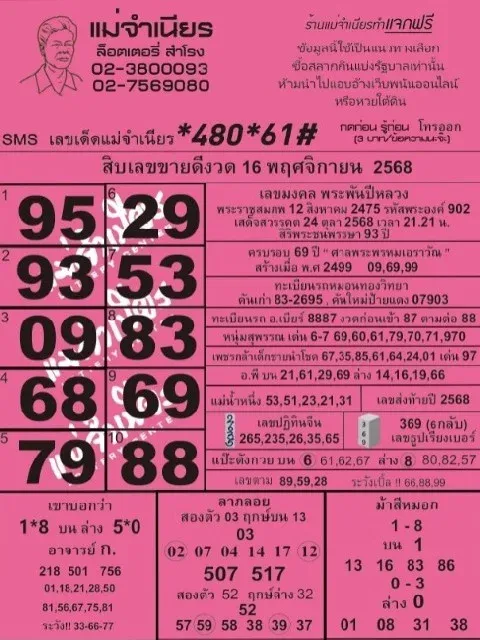 สิบเลขขายดีแม่จำเนียร งวด 16/11/68