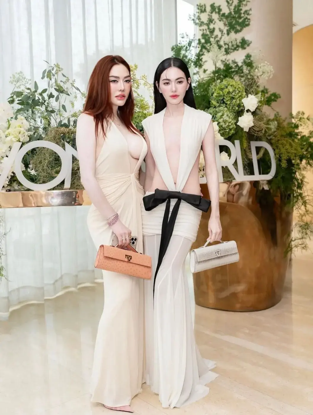 “ศึกประชันความแซ่บ! ใหม่ ดาวิกา – พี่เกล้า น้ำพราว ยืนหนึ่งความปังในชุดราตรีขาว แหวกอกลึกสะท้านอีเวนต์”