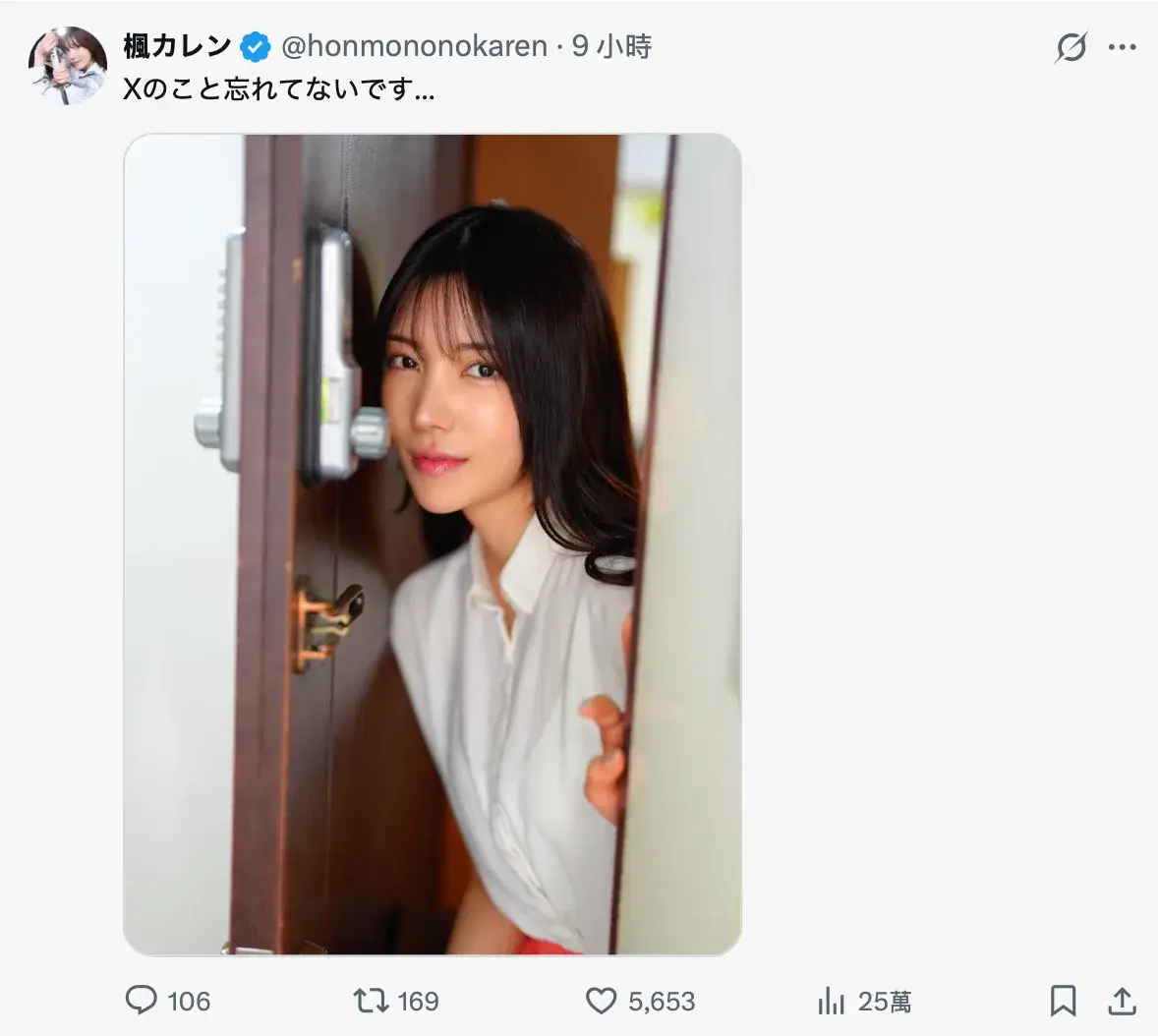 "ฉันไม่ลืม X นะ" (X ในที่นี้หมายถึง Twitter/X.com) เป็นข้อความที่แฟน ๆ คงอยากได้ยินจาก คาเรน (Karen) นางเอก AV ตัวท็อปที่ช่วงหลังแทบจะหายเงียบไปจากโลกออนไลน์ โดยเฉพาะการอัปเดตบนบัญชี X ส่วนตัว แม้ก่อนหน้านี้จะมีการไลฟ์สดผ่าน Instagram ซึ่ง "ฟัง" ดูเหมือนจะไม่มีปัญหาอะไร (เพราะเธอส่วนใหญ่ไม่เปิดเผยใบหน้า) แต่ถึงอย่างไร การปรากฏตัวและอัปเดตบน X ย่อมสร้างความอุ่นใจให้กับผู้ติดตามได้มากกว่า