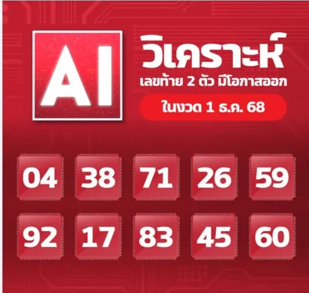 AI วิเคราะห์เลขท้าย 2 ตัว งวดวันที่ 1 ธันวาคม 68 โดยใช้สถิติย้อนหลัง 20 ปี