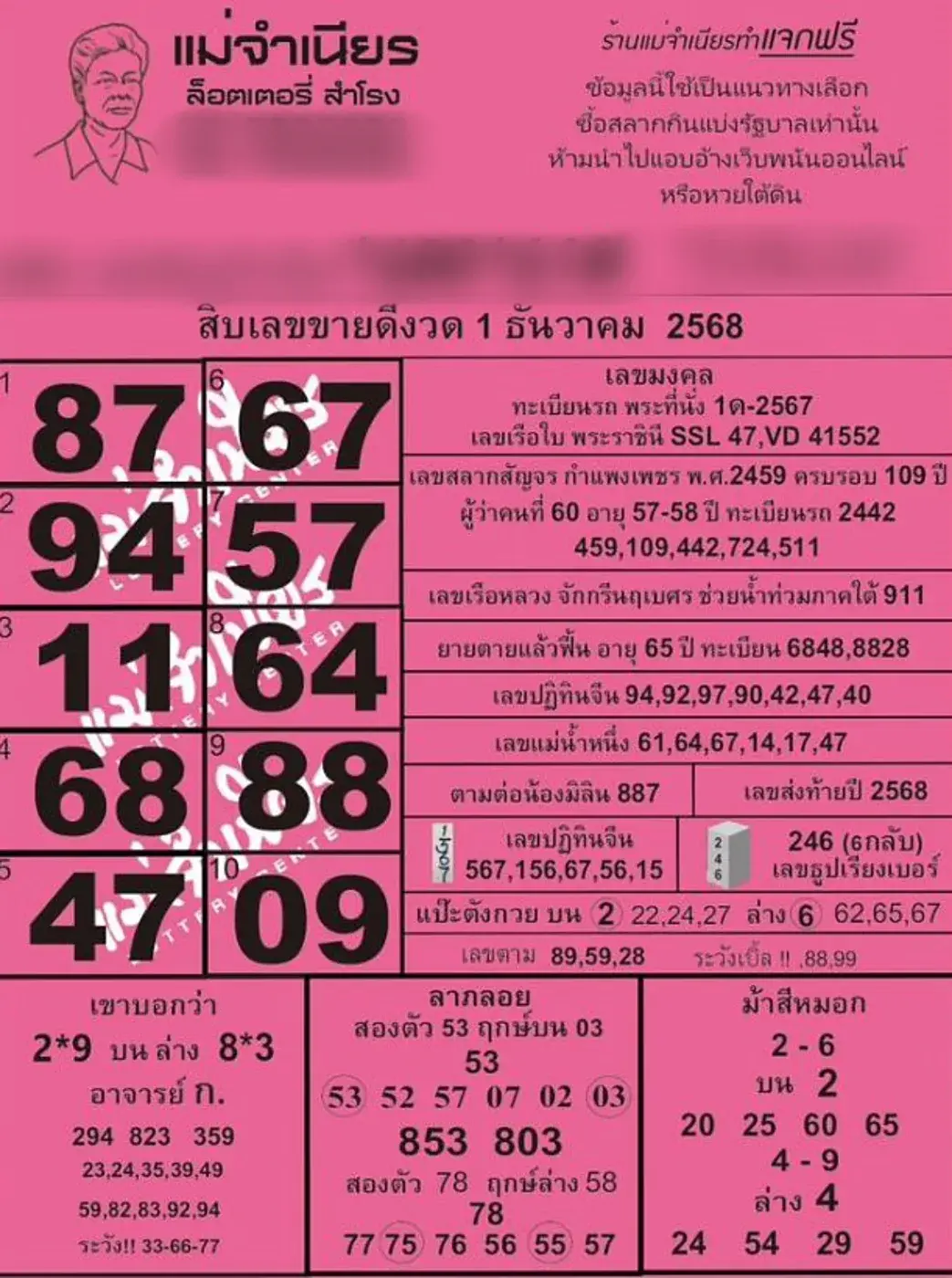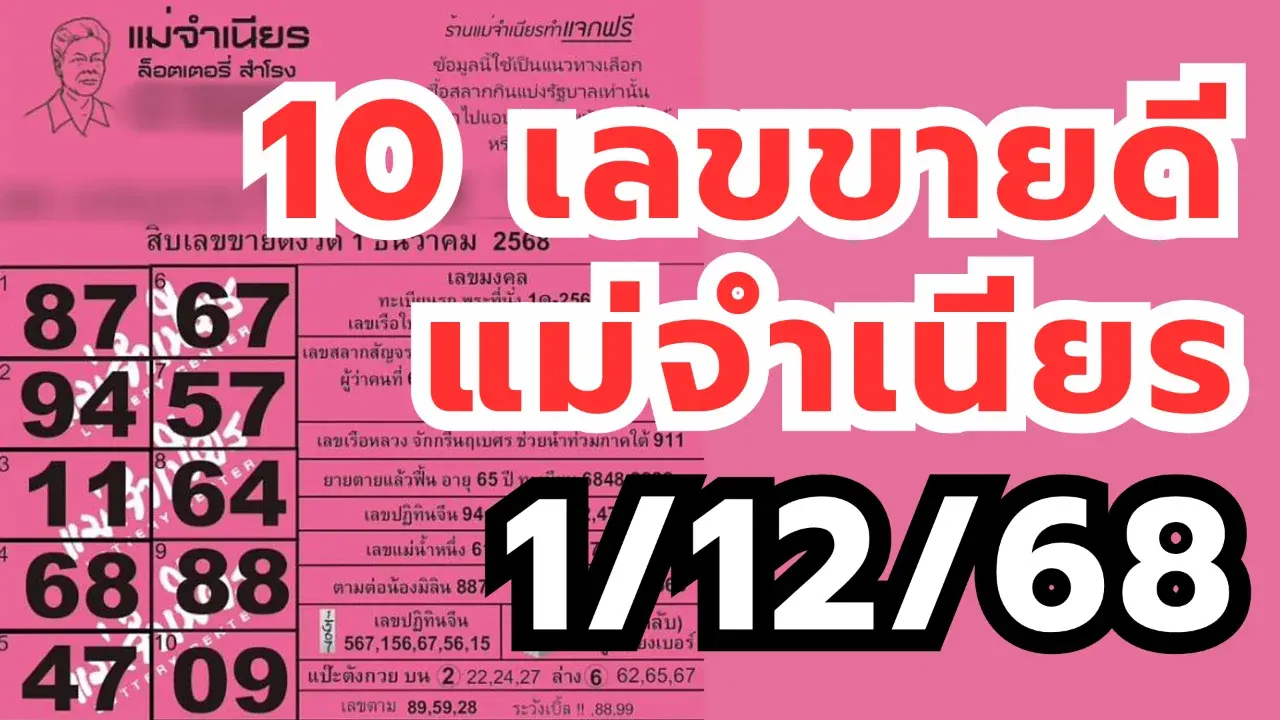 สิบเลขขายดีแม่จำเนียร งวด 1/12/68