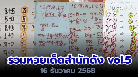 เลขเด็ด เลขมาเเรง เลขดัง "รวมหวยเด็ดสำนักดัง vol.5" งวดวันที่ 16 ธันวาคม 2568