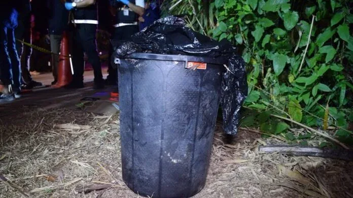 พบศพถูกยัดในถังพลาสติกดำ มัดมือเท้าด้วยผ้าห่อ 3 ชั้น ทิ้งริมทาง ตำรวจเร่งตามล่าฆาตกร