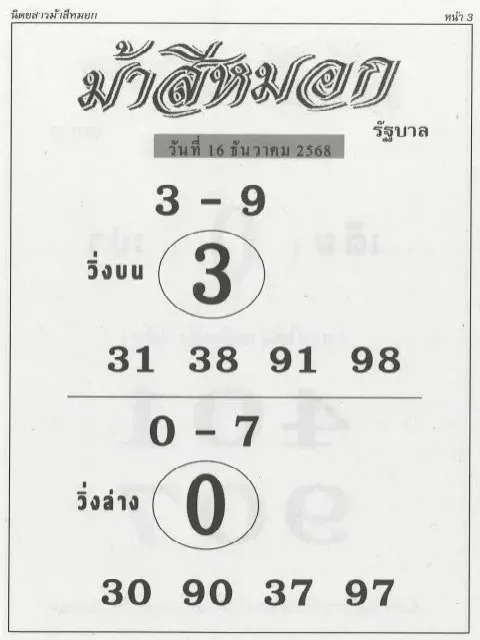 ม้าสีหมอกปล่อยเลขเด็ดน่าสนใจ งวด 1 ก.พ.2569 เซียนหวยจับตามองก่อนวันหวยออก