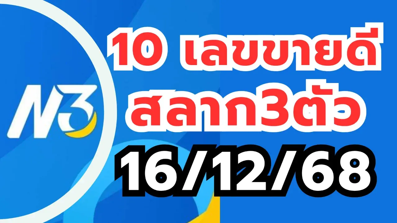 สิบเลขขายดี สลากตัวเลขสามหลัก N3 งวด 16/12/68