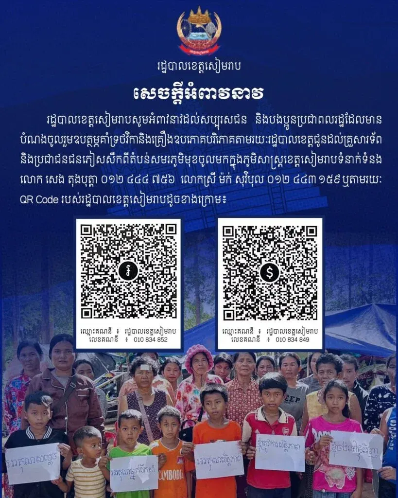 ตามคำประกาศบนเพจเฟซบุ๊กของสโมสร "อังกอร์ไทเกอร์" ระบุว่า "ทางสโมสรฟุตบอล "อังกอร์ไทเกอร์" ได้ตัดสินใจร่วมบริจาคเงินสนับสนุน แก่ครอบครัวทหารและประชาชนผู้ลี้ภัย ผ่านทางฝ่ายปกครองจังหวัดเสียมเรียบ" และ "เราขอเชิญชวนผู้มีจิตศรัทธา แฟนกีฬา และ ผู้ที่รักฟุตบอลทุกท่านร่วมบริจาคเงินหรือสิ่งของอุปโภคบริโภค ผ่านทางฝ่ายปกครองจังหวัดเสียมเรียบด้วยเช่นกัน"