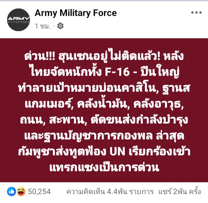 สวัสดีชาว rollwithus กันทุกคน ล่าสุดจากเพจ Army Military Force บอกว่า ฮุนเซน นั่งไม่ติดเก้าอี้แล้ว หลังจากที่ ไทยจัดหนักจัดเต็ม ทั้ง F-16 - ปืนใหญ่