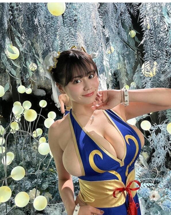 AV ดาราสาวผู้มีหน้าอกมหึมาคนนี้ เคยสร้างสถิติด้วยการแสดงในภาพยนตร์ที่มีนักแสดงชาย "ผู้คลั่งไคล้หน้าอก" ถึง 24 คนในเรื่องเดียว การคอสเพลย์เป็นชุนหลีด้วยรูปร่างที่เต็มไม้เต็มมือและชุดกี่เพ้าสีน้ำเงินสุดรัดรูปในครั้งนี้ จึงไม่เพียงแต่ดึงดูดใจแฟน ๆ AV แต่ยังสามารถกุมหัวใจของบรรดา "คนขับรถเก่า" และเกมเมอร์ที่กำลังโหยหานักแสดงที่สามารถถ่ายทอดตัวละคร "ชุนหลี" ได้อย่างสมจริงและน่าประทับใจที่สุดอีกด้วย
