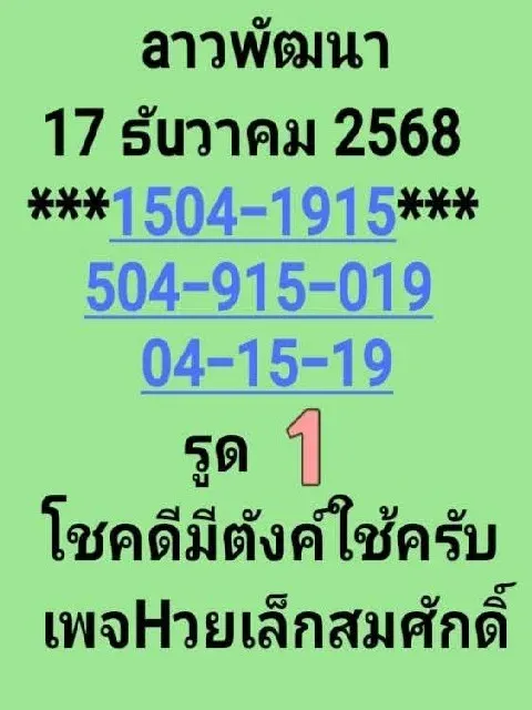 แนวทางหวยลาวพัฒนา งวดวันที่ 17 ธันวาคม 2568