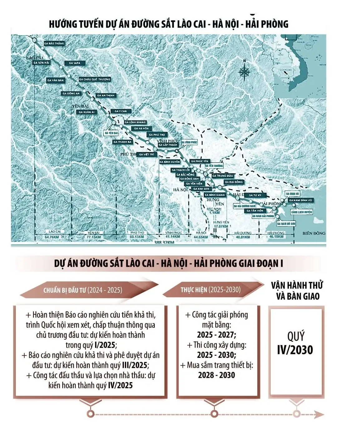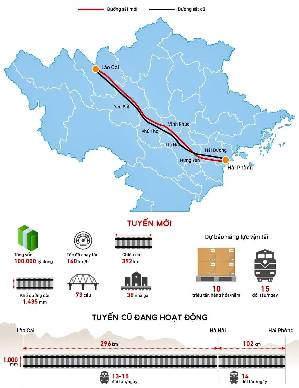 โครงการรถไฟระยะทาง 391 กิโลเมตร มูลค่า 7.72 พันล้านดอลลาร์ จะเริ่มจากเมืองชายแดนลาวไก ผ่านกรุงฮานอย เมืองหลวงของประเทศเวียดนาม ก่อนจะไปสิ้นสุดที่เมืองไฮฟอง ซึ่งเป็นที่ตั้งของท่าเรือที่ใหญ่ที่สุด ในภาคเหนือของเวียดนามที่ใกล้ประเทศจีน ซึ่งตัวรางจะเชื่อมต่อกัน