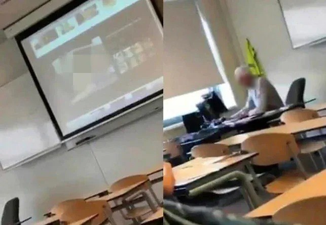 นักเรียนตกใจ หลังครูแอบดูหนังโป๊ในห้องเรียน มือถือส่งหน้าจอเข้าโปรเจคเตอร์ไม่รู้ตัว