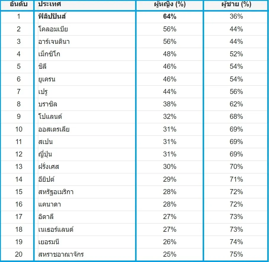 ทั้งนี้ก็ได้สรุปข้อมูลจากกราฟ Proportion of Female Visitors มาเป็นตารางเปรียบเทียบทั้ง 20 อันดับ ได้ดังนี้