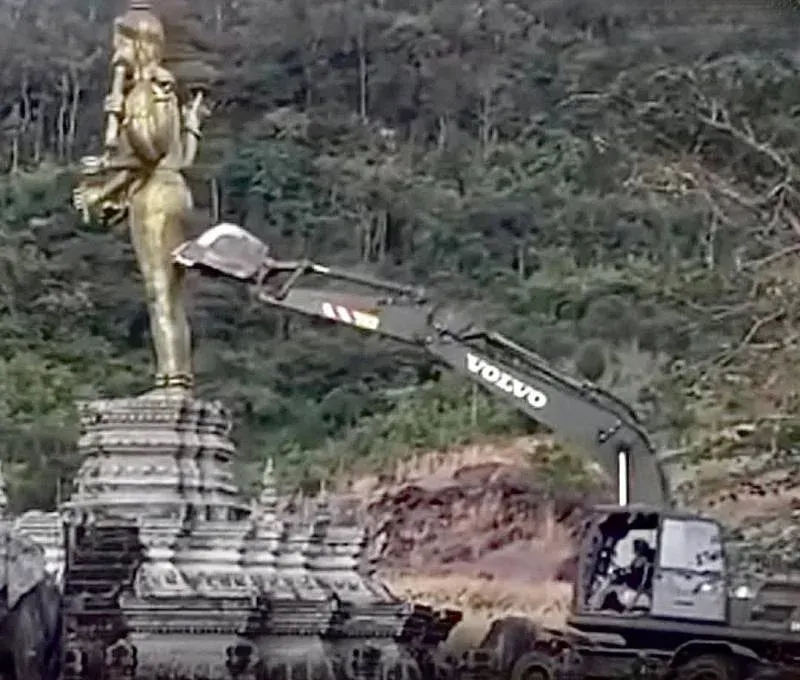 อย่างไรก็ตาม เมื่อวันที่ 24 ธันวาคม 2568 นายรันธีร์ ไจสวาล โฆษกกระทรวงการต่างประเทศอินเดีย ได้ระบุในแถลงการณ์ว่า รูปปั้นดังกล่าวคือ "พระวิษณุ" ซึ่งเป็นเทพเจ้าสูงสุดที่ชาวฮินดูเคารพบูชา พร้อมเน้นย้ำว่าเทพเจ้าฮินดูและพุทธถือเป็นมรดกทางอารยธรรมร่วมกันของภูมิภาคนี้ การทำลายรูปปั้นแม้จะอยู่ในบริบทของข้อพิพาทดินแดน ถือเป็นการทำร้ายความรู้สึกของผู้ศรัทธาทั่วโลกและเป็นสิ่งที่ไม่ควรเกิดขึ้นอย่างยิ่ง