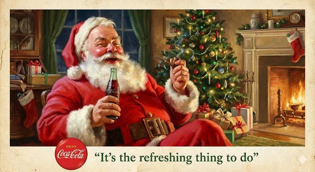 จุดพีคสุดๆ ที่ทำให้ซานต้าเป็นไอคอนชุดแดงขาวระดับโลก? ขอบคุณบริษัทน้ำอัดลมยักษ์ใหญ่ Coca-Cola เลยจ้าาา! ช่วงปี 1931-1960s โคคา-โคล่าใช้ซานต้าในแคมเปญโฆษณาคริสต์มาส วาดโดยศิลปิน Haddon Sundblom ให้ลุงยิ้มกว้าง ดื่มโค้กสดชื่น พุงพลุ้ย ชุดแดงขาวสดใส (สีแบรนด์โค้กพอดีเลย ฮา!) ภาพพวกนี้ดังทั่วโลก เพราะโค้กขายทั่วplanet ทำให้ทุกชาติเห็นซานต้าแบบเดียวกันหมด ก่อนหน้านั้น ลุงเคยใส่ชุดเขียว น้ำเงิน แดง หรือแม้แต่ผอมๆ บางเวอร์ชั่นเหมือนผีเลยนะ! แต่หลังโค้กปั้น ลุงกลายเป็น jolly fat guy ชุดแดงมาตรฐานสากลไปซะงั้น บางคนบอกโค้ก "สร้าง" ซานต้าขึ้นมา แต่จริงๆ แค่ช่วย standardize ภาพลักษณ์ให้แจ่มขึ้นเท่านั้นแหละ