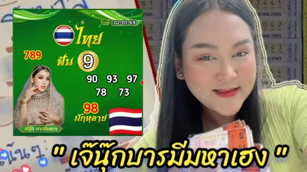 เจ๊นุ๊ก บารมีมหาเฮง กับเลขเน้นงวดนี้ สำหรับเจ๊นุ๊กซึ่งมีชื่อเสียงจากการให้เลขเข้าเป้าติดต่อกันหลายงวด ในงวดนี้ได้ให้เลขเด่นหรือเลขรูดคือเลข 9 โดยมีเลขสองตัวที่น่าสนใจคือ 90, 93, 97, 78 และ 73 แต่ตัวที่เน้นย้ำเป็นพิเศษคือเลข 98 ส่วนเลขสามตัวตรงที่ปล่อยออกมาคือ 789 ซึ่งถือเป็นชุดเลขที่หลายคนกำลังจับตามอง