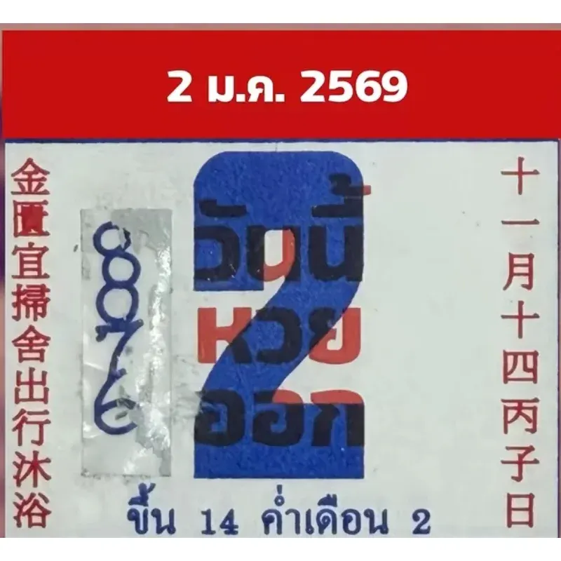 งวด 2 มกราคม 2569 นี้ มาดูแนวทางเลขปฏิทินจีน ซึ่งในงวดนี้มีหลายฉบับให้ติดตามอีกเช่นเคย แต่ละฉบับจะมีตัวเลขที่แตกต่างกันออกไป เลขปฏิทินจีนเป็นตัวเลขที่เขียนกำกับไว้ในปฏิทิน โดยส่วนใหญ่จะเขียนกำกับไว้ตรงกับวันสลากกินแบ่งรัฐบาลออก