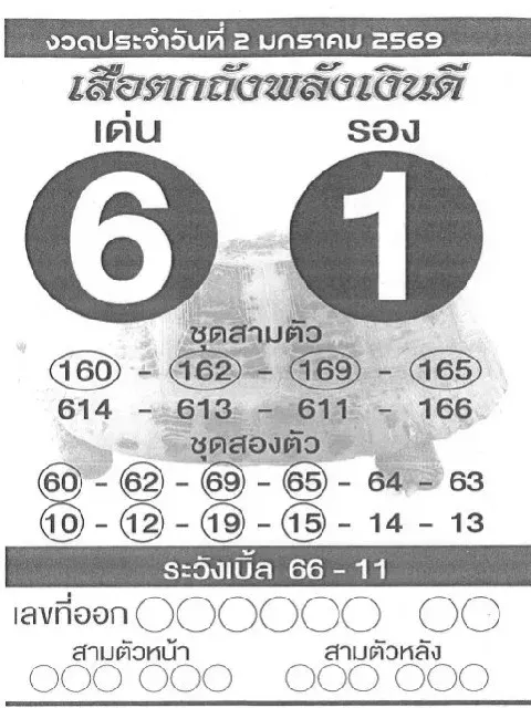 เสือตกถังพลังเงินดี ปล่อยแนวทาง เลขเด่น 2 ตัว 3 ตัว งวด 2 ม.ค.69