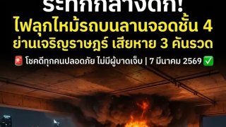 ระทึกกลางดึก! ไฟลุกไหม้รถบนลานจอดชั้น 4 ย่านเจริญราษฎร์ เสียหาย 3 คันรวด โชคดีปลอดภัยทุกคน 🚨