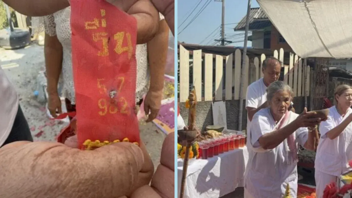 ไฮไลต์ที่ทุกคนรอคอยเกิดขึ้นในช่วงประกอบพิธีโดยพราหมณ์เจ้าพิธี เมื่อมีการหยดน้ำตาเทียนลงในอ่างน้ำมนต์ศักดิ์สิทธิ์ ชาวบ้านต่างพากันรุมล้อมส่องดูตัวเลขที่ลอยเด่นขึ้นมา ซึ่งหลายคนมองเห็นเป็นเลข 3, 7, 8 นอกจากนี้ยังมีเลขเด็ดจากหางประทัดที่จุดเอาฤกษ์เอาชัยในพิธีบวงสรวง ปรากฏเป็นเลข 57 และ 982 ซึ่งชาวบ้านต่างรีบจดบันทึกและถ่ายภาพเพื่อเตรียมนำไปเสี่ยงโชคในงวดวันที่ 2 มกราคมนี้