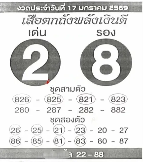 เลขเด็ด เสือตกถังพลังเงินดี งวดวันที่ 17/01/69 นี้ก็ได้ปล่อยทั้งเลขเด่น เลขดัง มาให้บรรดาคอหวยได้ไปพิจารณากัน สำหรับใช้เป็นแนวทางในการเสี่ยงโชคซื้อลอตเตอรี่ โดยงวดนี้มีเลขเด่น คือ 2 และรอง คือ 8 ส่วนตัวเลขในชุดอื่น ๆ ก็มีความน่าสนใจเป็นอย่างมาก สามารถไปดูที่ใบหวยด้านล่างกระทู้กันได้เลย