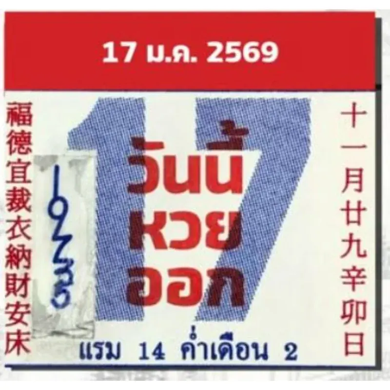 รวม เลขปฏิทินจีน งวด 17/1/69