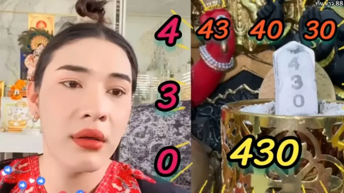 จากการจุดธูปมงคลเพื่อขอโชคลาภ ปรากฏตัวเลขที่ค่อนข้างเด่นชัดให้เหล่าคอหวยได้นำไปตีความ โดยทางช่องระบุว่ามองเห็นเป็นเลขชุด 4 3 0 ซึ่งสามารถนำมาวิเคราะห์และจับคู่เพื่อเป็นแนวทางในการเลือกซื้อสลากกินแบ่งรัฐบาลได้ดังนี้: