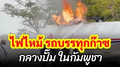 ไฟไหม้ รถบรรทุกก๊าซ กลางปั๊มในกัมพูชา
