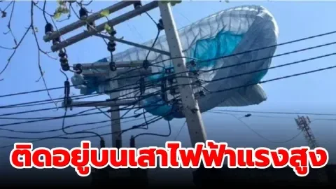นักท่องเที่ยวต่างชาติ ติดอยู่บนเสาไฟฟ้าแรงสูงขณะเล่นพาราไกลดิ้ง