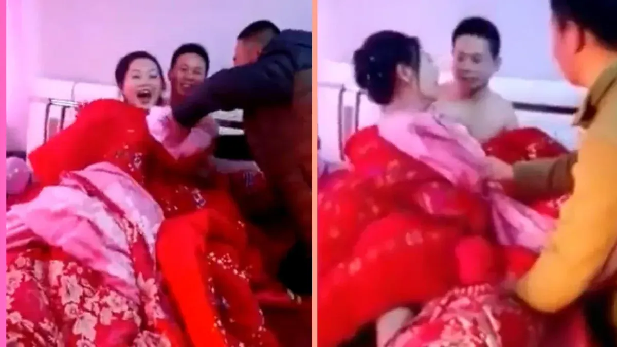 เหตุการณ์ชวนสลดใจนี้เกิดขึ้นในประเทศจีน ภายในห้องหอที่ควรจะเป็นพื้นที่ส่วนตัวของบ่าวสาว คลิปวิดีโอเผยให้เห็นภาพเจ้าสาวและเจ้าบ่าวที่นั่งอยู่บนเตียงในสภาพกึ่งเปลือย แต่กลับถูกกลุ่มแขกผู้ชายบุกเข้ามาในห้องและพยายามใช้กำลังดึงทึ้งผ้าห่มสีแดงที่ใช้ปกปิดร่างกายออกอย่างบ้าคลั่ง ในบางจังหวะมีการดึงแรงจนเกือบเผยให้เห็นเรือนร่างของเจ้าสาวที่สวมเพียงชุดชั้นใน สร้างความอับอายและตื่นตระหนกจนเธอต้องส่งเสียงกรีดร้องพร้อมพยายามยื้อยุดผ้าห่มไว้สุดชีวิต