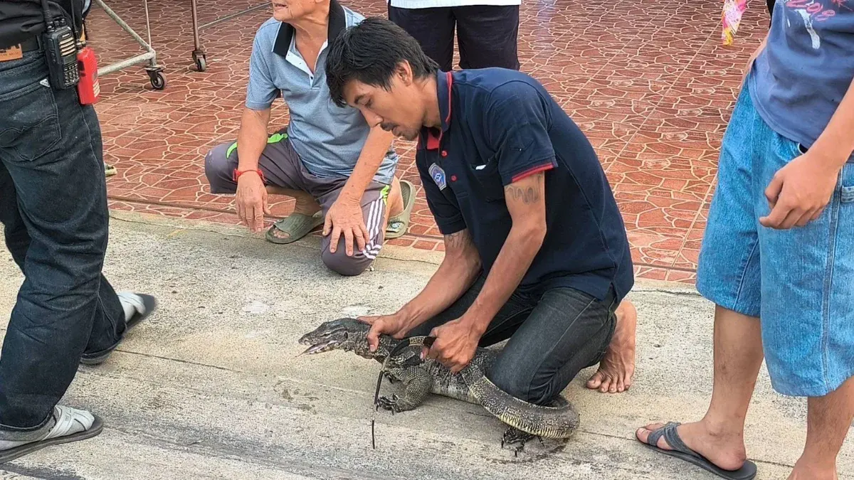 จากการตรวจสอบพบว่าเป็นตัวเงินตัวทองที่มีความยาวกว่า 1 เมตร และมีน้ำหนักตัวมากถึง 20 กิโลกรัม สภาพดุร้ายและพยายามดิ้นสู้พร้อมใช้หางฟาดใส่เจ้าหน้าที่อยู่ตลอดเวลา ทางทีมกู้ภัยต้องใช้ทักษะและความระมัดระวังอย่างสูง โดยใช้เวลากว่า 30 นาที จึงสามารถสยบเจ้าตัวยักษ์นี้ได้สำเร็จเพื่อเตรียมนำไปปล่อยคืนสู่ธรรมชาติต่อไป