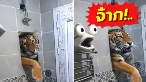 อีนี่ฉานก็อาบน้ำของฉานอยู่ดีๆ เนื้อตัวก็กำลังสว่างสะอาดกระจ่างตา...หันมามองอีกที อ้าว...เสือมาจากไหน อีนี่ฉานงงแท้ ? (เหตุเกิดที่ประเทศอินเดียจ้า)