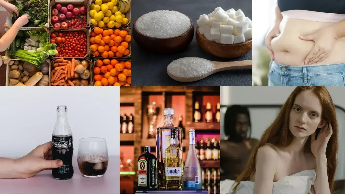 4.น้ำตาล เมื่อกินน้ำตาลมากเกินไปย่อมไม่ดีสำหรับฟันและน้ำหนักตัว บางการศึกษายังแสดงให้เห็นว่าน้ำตาลอาจเป็นอันตรายต่อตับเช่นเดียวกับแอลกอฮอล์ การมีระดับน้ำตาลที่สูงทำให้เกิดการสะสมไขมันในตับจนกลายเป็นโรคไขมันพอกตับ แม้ในผู้ที่ไม่อ้วนก็ตาม