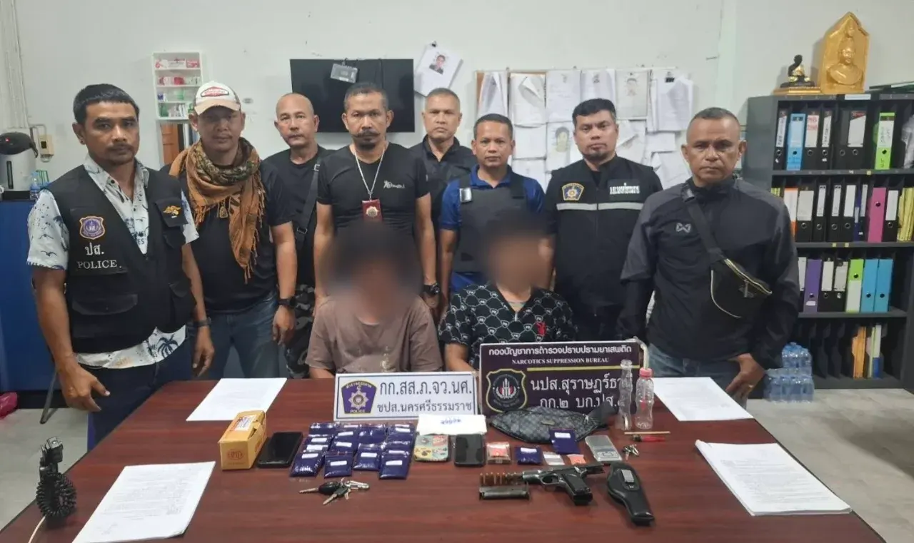 วันที่ 31 มกราคม 2569 พ.ต.ท.เอกชัย พลเกษตร รองผู้กำกับสืบสวนภูธรจังหวัดนครศรีธรรมราช นำกำลังตำรวจชุดสืบสวนจังหวัด บุกจับนายณัฐชัย หรือ บอล อายุ 26 ปี อยู่บ้านหมู่ 6 ต.กะหรอ อ.นบพิตำ พร้อมของกลางยาบ้าจำนวน 433 เม็ด ยาไอซ์ 1.5 กรัมพร้อมกับอาวุธปืนพกสั้น 1 กระบอก กระสุนปืน 9 มม.จำนวน 7 นัด ที่บ้านหมู่ 4 ต.ไทยบุรี อ.ท่าศาลา จ.นครศรีธรรมราช ก่อนจะขยายผลล่อซื้อจับกุมนายชนานนท์ หรือ โก้ อายุ 43 ปี อยู่บ้านหมู่ 5 ต.ตลิ่งชัน ต.ท่าศาลา จ.นครศรีธรรมราช เอเย่นต์ยาบ้ารายใหญ่ในพื้นที่ อ.ท่าศาลา โดยมีการหมายส่งมอบยาบ้าริมถนนสายนครศรีธรรมราช - สุราษฎร์ธานี ต.ท่าศาลา อ.ท่าศาลา จ.นครศรีธรรมราช