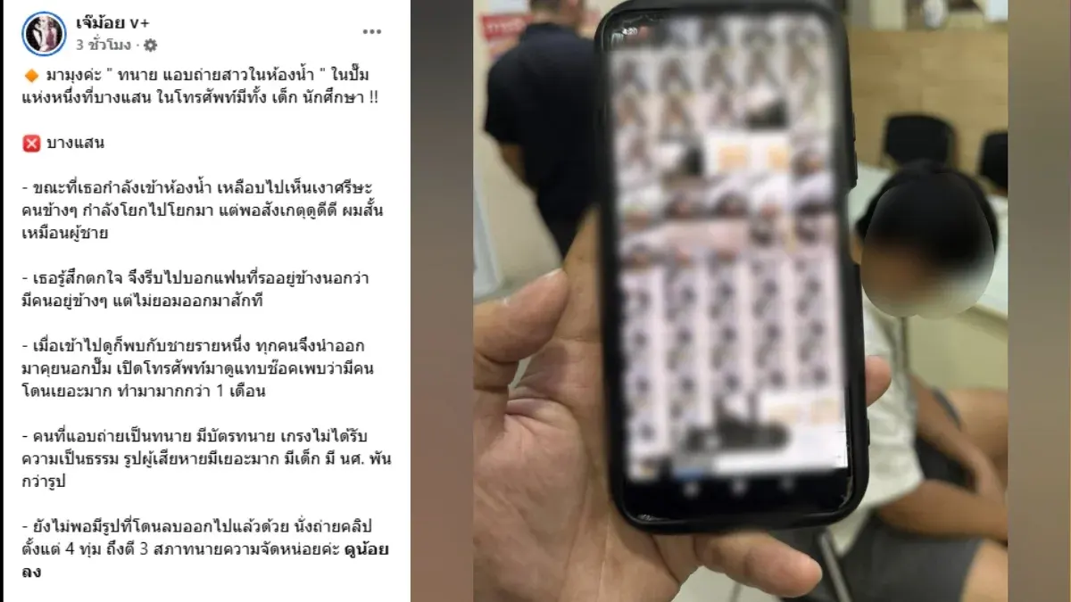 งามไส้! รวบทนายหื่นแอบถ่ายสาวในห้องน้ำปั๊มบางแสน พบหลักฐานเด็ดนับพันรูป