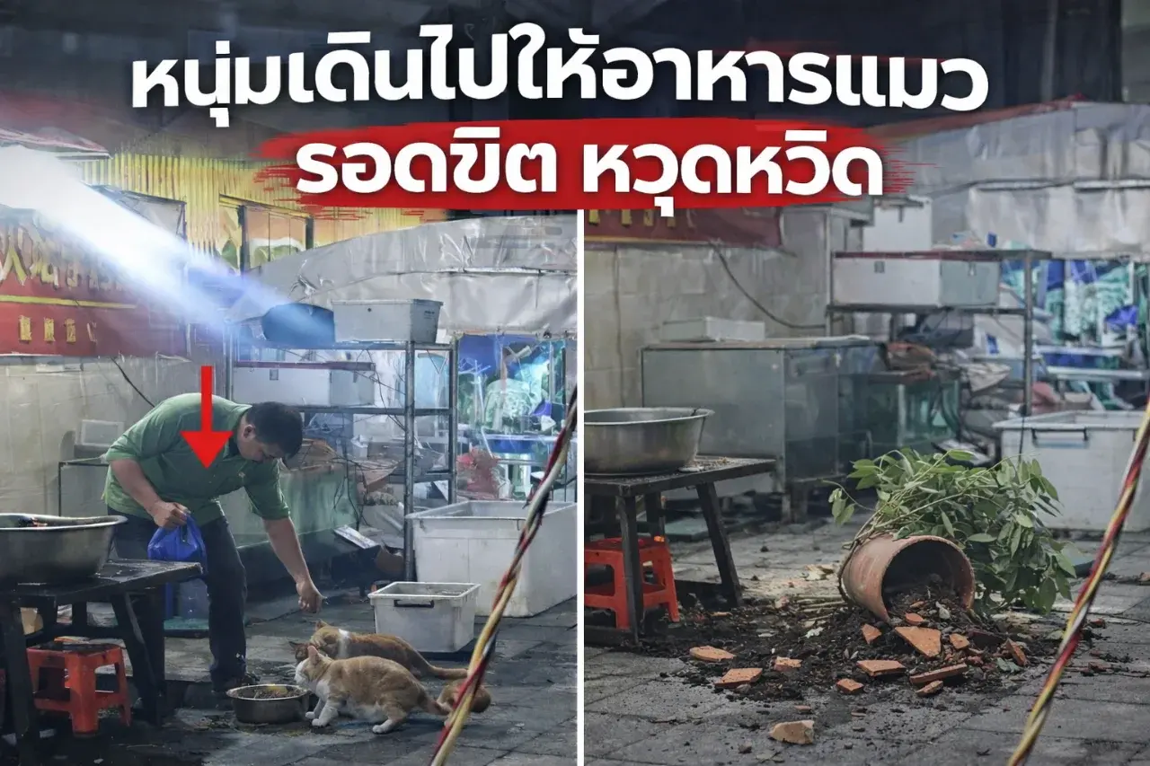หนุ่มใจบุญเดินไปให้อาหารแมวรอดตายหวุดหวิด