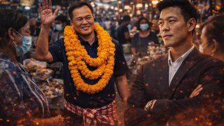 อนุทิน” ปราศรัยใหญ่ตลาดสามโคก แขวะคนไขว้มือหลังไม่เคารพเพลงชาติ–ไม่ให้เกียรติบรรพบุรุษ ด้าน “เท้ง” โต้ดรามาคลิป ยืนยันร้องเพลงชาติจริง ชี้ความรักชาติไม่ควรวัดจากความดังของเสียง