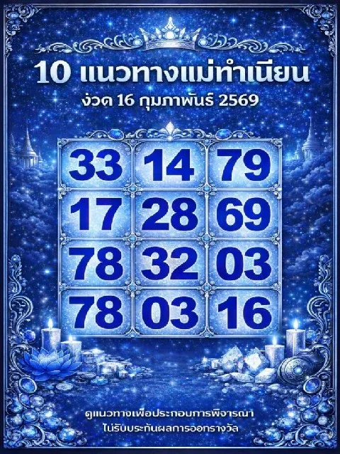 กูรู ใบ้หวย ดุ่ยภรัญ เปิดโพยหวยเลข 2 ตัว 3 ตัว งวด 16 ก.พ.69
