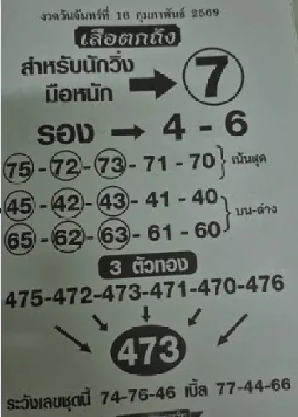 เลขเด็ด เสือตกถัง สูตร "อ.พล ขอนแก่น" งวดวันที่ 16/02/69 นี้ก็ได้ปล่อยทั้งเลขเด่น เลขดัง มาให้บรรดาคอหวยได้ไปพิจารณากัน สำหรับใช้เป็นแนวทางในการเสี่ยงโชคซื้อลอตเตอรี่ โดยงวดนี้มีเลขเด่น คือ 7 และรอง คือ 4 - 6 ส่วนตัวเลขในชุดอื่น ๆ ก็มีความน่าสนใจเป็นอย่างมาก สามารถไปดูที่ใบหวยด้านล่างกระทู้กันได้เลย