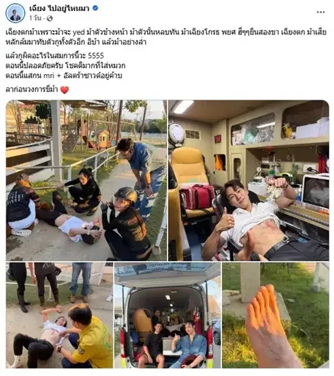 ด้านเจ้าของคอกม้า เผยว่า เป็นการตกม้าที่รุนแรงที่สุดเท่าที่เคยเห็นมาและปาฏิหาริย์มากที่รอดมาได้ ส่วนครูที่สอนขี่ม้าก็ร้องไห้ตลอดเวลาเพราะรู้สึกผิด ด้านคุณเฉียงบอกว่าต่อจากนี้เลิกขี่ม้าแน่นอน ไม่เอาอีกแล้วเข็ดไปจนตาย โชคดีที่ใส่หมวกกันน็อคเลยทำให้ไม่เป็นอะไรมาก ขอบคุณแฟนคลับทุกคนที่ชอบดุเวลาไม่ใส่หมวกกันน็อค ต่อไปนี้จะใส่หมวกกันน็อคทุกครั้งกับทุกอย่างเลยครับ ก่อนหน้านี้ทางคุณเฉียงได้มีการโพสต์ภาพตอนที่ได้รับบาดเจ็บเอาไว้ พร้อมกับระบุข้อความว่า “เฉียงตกม้าเพราะม้าจะ yed ม้าตัวข้างหน้า ม้าตัวนั้นหลบทัน ม้าเฉียงโกรธ พยศ ฮี่ ๆ ๆ ยืนสองขา เฉียงตก ม้าเสียหลักล้มมาทับตัวกูทั้งตัวอีก อิบ้า แล้วม้าอย่างล่ำ แล้วกูผิดอะไรในสมการนี้วะ 5555 ตอนนี้ปลอดภัยครับ โชคดีมากที่ใส่หมวก ตอนนี้แสกน mri + อัลตร้าซาวด์อยู่ค้าบ ลาก่อนวงการขี่ม้า”