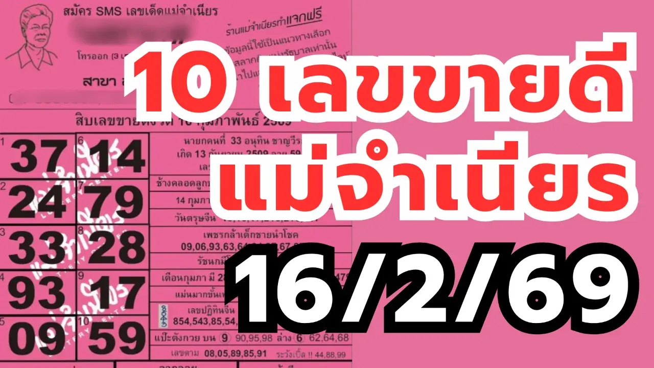 สิบเลขขายดีแม่จำเนียร งวด 16/2/69