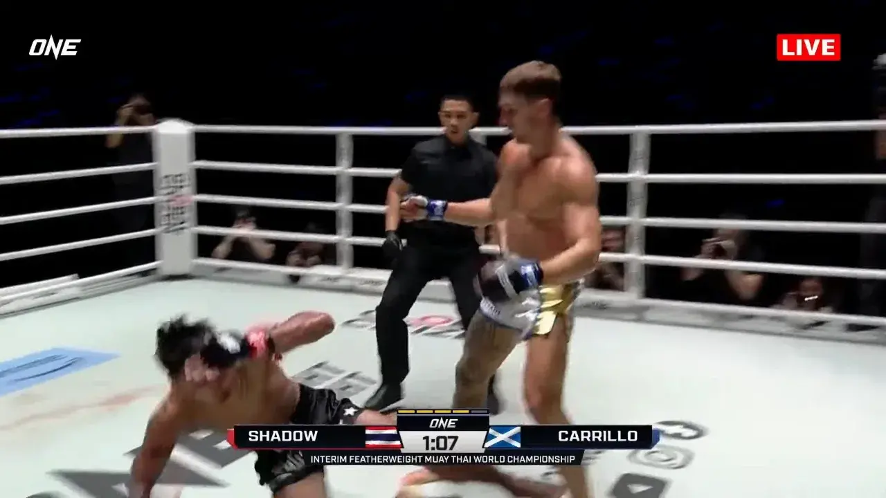 วันนี้ (14 ก.พ. 69) เวลาประมาณ 11.30 น. การแข่งขันมวย ONE Fight Night Ep. 40 จัดขึ้น ที่สนามมวยลุมพินี (รามอินทรา) ถ่ายทอดสดผ่านทางสถานีโทรทัศน์ช่อง 7 คู่รองไฮไลท์ คือ “นิโค คาร์ริลโล” เจ้าของฉายา “King of the North” แห่งเมืองกลาสโกว์ ประเทศสกอตแลนด์ ปะทะกับ “ชาโด้ มาวินมวยไทย” หรือ “นายวีรภัทร ปรีชา” มีชื่อเล่นว่า “เอ็ม” นักชกดาวรุ่งชาวไทย จังหวัดตาก เพื่อชิงแชมป์โลกONE มวยไทย รุ่นเฟเธอร์เวต (145-155 ป.) เฉพาะกาล