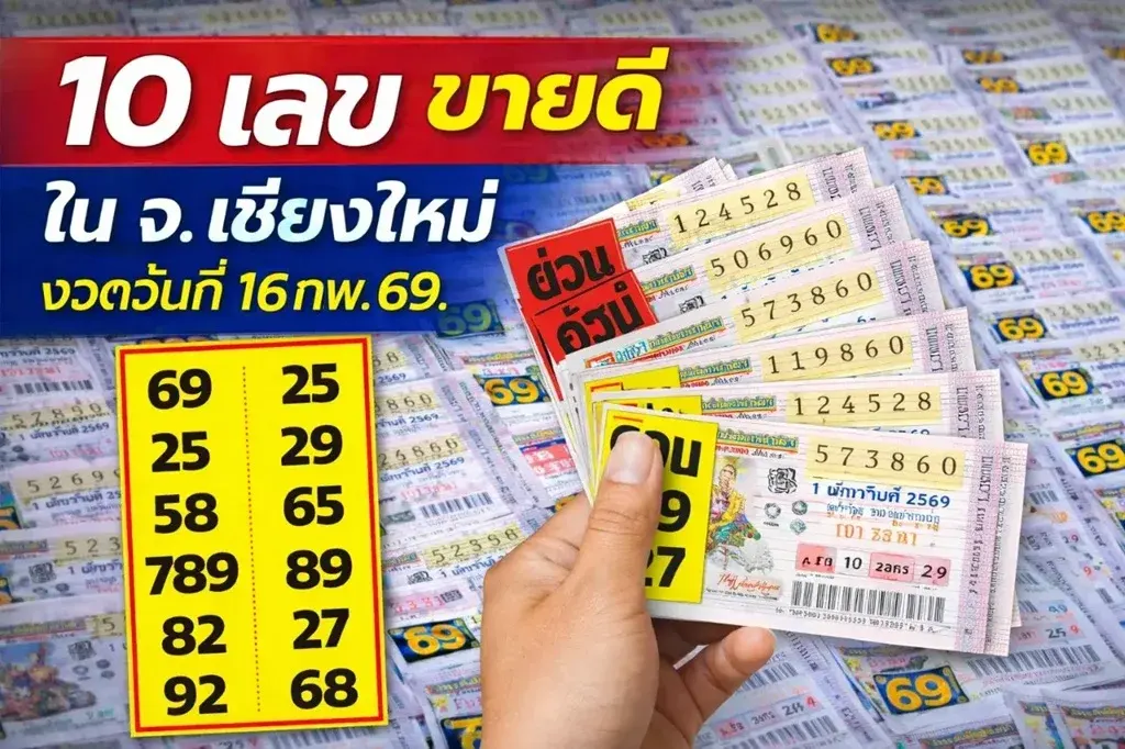 10 เลขขายดีใน จ.เชียงใหม่ งวดวันที่ 16 กุมภาพันธ์ 69..รีบส่องด่วน ก่อนหวยออก!!
